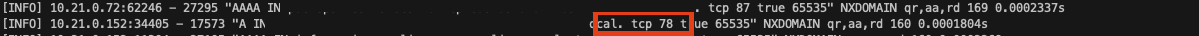 위 정보들을 바탕으로 원인 파악을 위해 CoreDNS Log와 VPC Flow Log를 확인해봤지만, DNS Query와 관련된 로그가 발견되지 않았습니다.