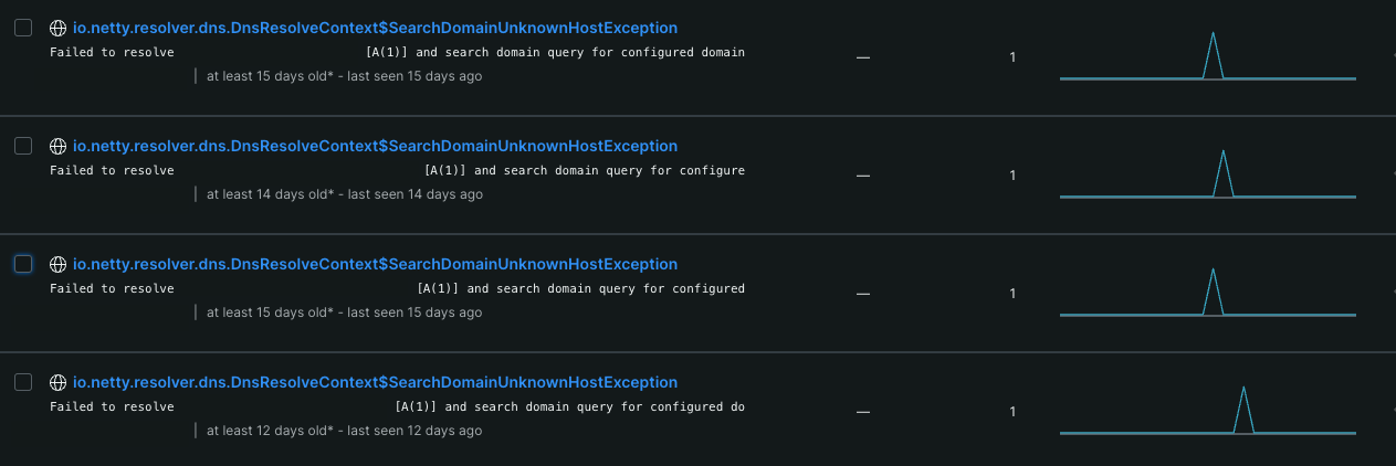 "io.netty.resolver.dns.DnsResolveContext$SearchDomainUnknownHostException" 가 Error Log의 이름인데요.