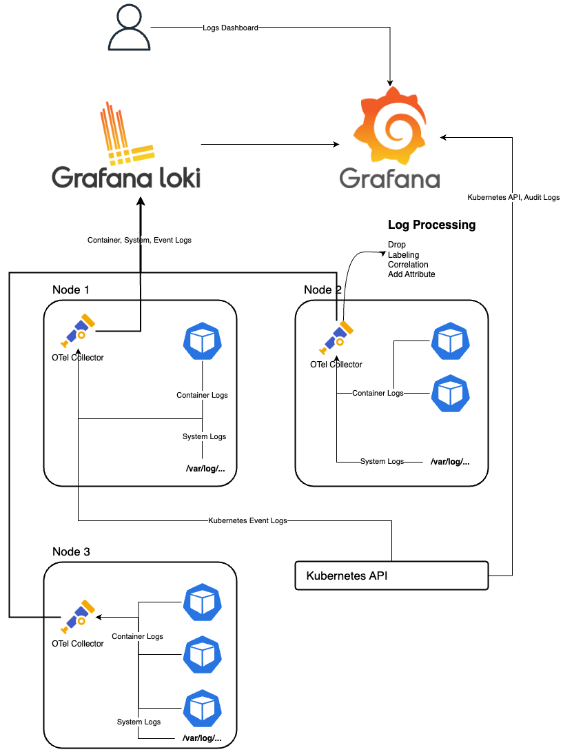 OTel Collector는 Promtail와 EventExporter에서 수집한 Log들을 받아서 가공하고 Loki로 전송하는 중간다리 역할을 합니다.