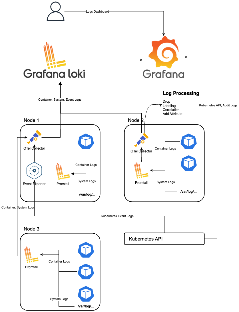| Host level | Promtail | Dataplane, System Log | Daemonset |