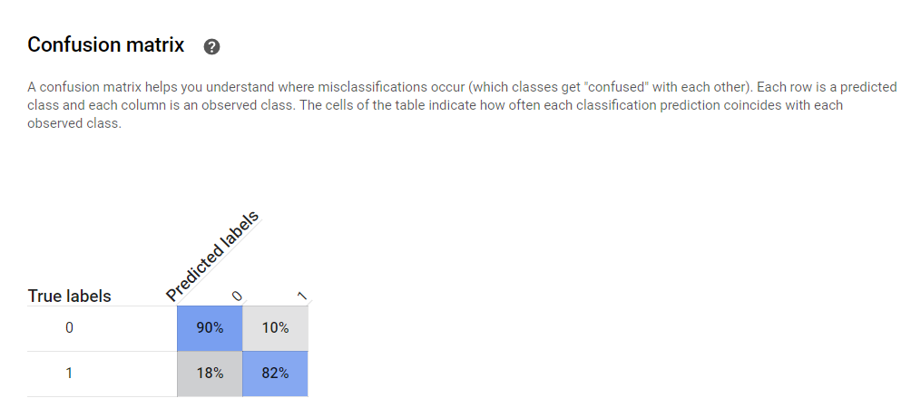 AutoML Tables에서 자동으로 두 가지의 정보를 분류할 수 있는 Binary Classification model을 생성했다는 점이다.