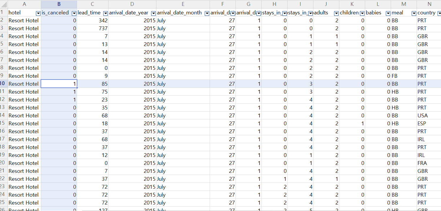이제 이 데이터를 토대로 고객의 호텔 예약 취소 여부를 예측할 수 있는 모델을 만들어 보자.