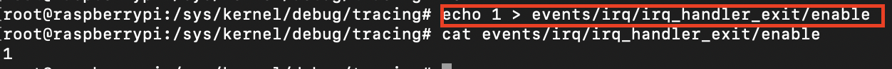 예를 들어 인터럽트 핸들링의 종료 Event를 추적하고자 한다면 아래와 "events/irq/irq_handler_exit/enable" 파일의 값을 1로 변경합니다.