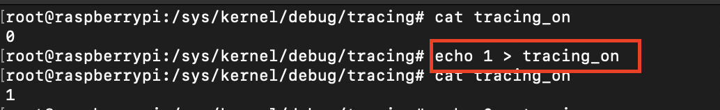 echo 1 > /sys/kernel/debug/tracing/tracing_on